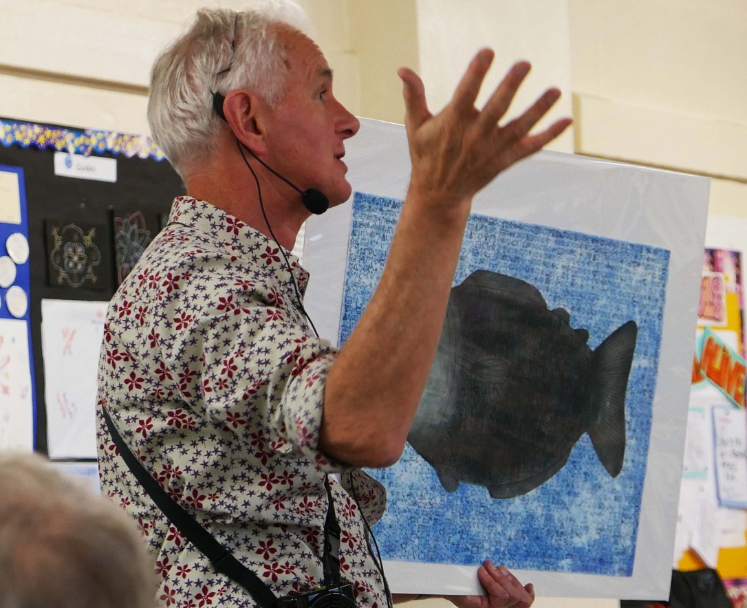 Last Friday the Halifax Art Society learned that myths, legends, stories, imagination and colour are part of the make up of Barry Cook’s work. Members enjoyed learning all about school days, college days and the processes of creating such imaginative work. We all had a go at creating characters – not an easy thing to do in a few minutes.