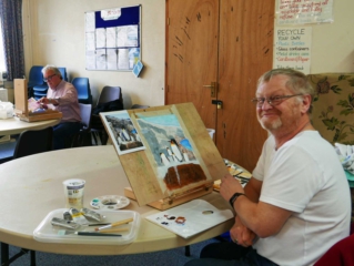 Last Friday a reduced number of members of the Halifax Art Society came together to try for themselves some Palimpsest paintings, remembering what we had learned the previous week.