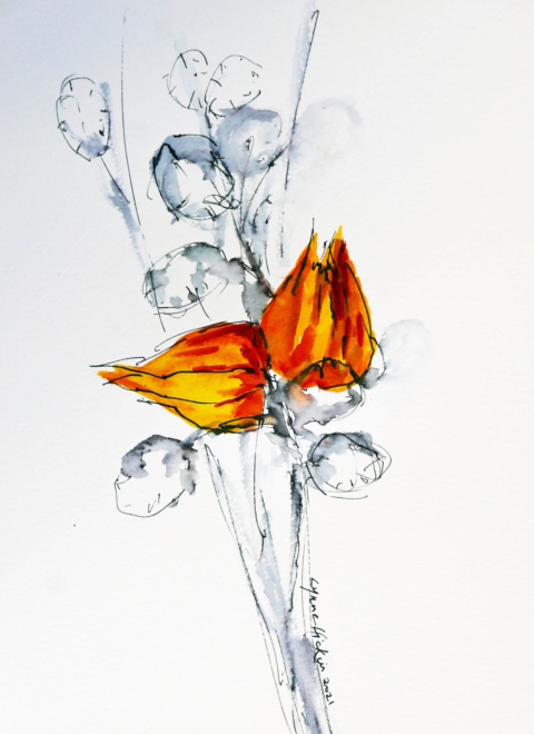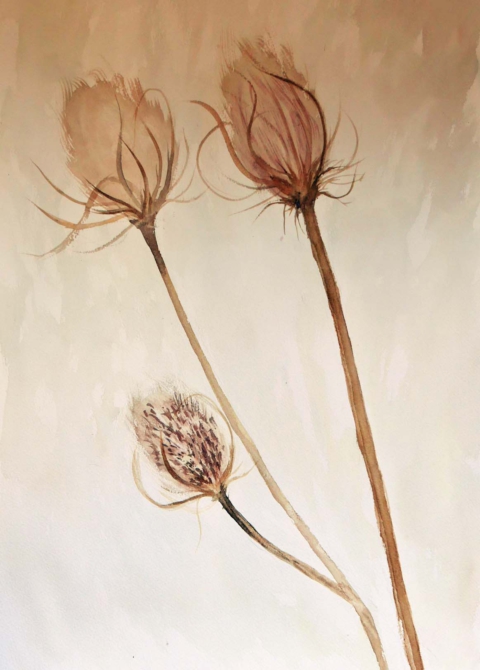 We had a very enjoyable workshop on Friday, 26th November, painting and drawing some lovely seed heads – teasels, honesty, cones and others. Some people used watercolour, some used acrylic inks, and some did detailed botanical studies in pen and ink or in soft pencil – a beautiful selection.