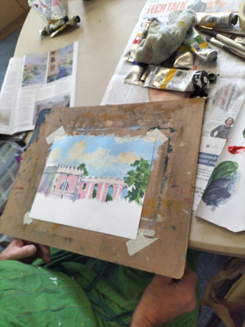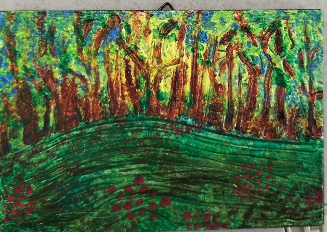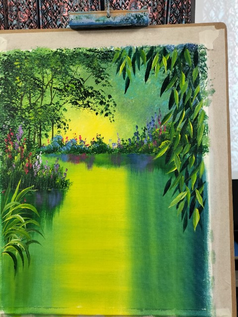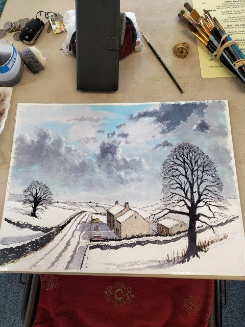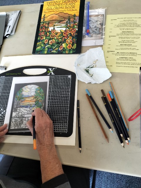 Last Friday members of the HAS came together to put into practice what we had learned in the previous week’s session with Tracey Krupianka. Some of us used special brushes laced with two colours. Others tried to dab a background with pieces of a sponge, or used a dry brush to mix colours. Some members preferred to finish other pieces of art. Once again a very enjoyable Friday morning.