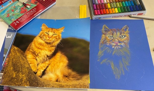 On the 21st October, a soft pastel workshop was led by Carol Pope and the subject matter was a portrait of a person or animal. Carol talked through how she created the many wonderful portraits using different techniques.
