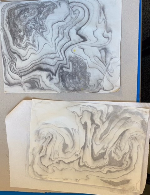 Dennis organised and led an Ebru workshop, which is the Turkish way of marbling using black ink.