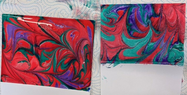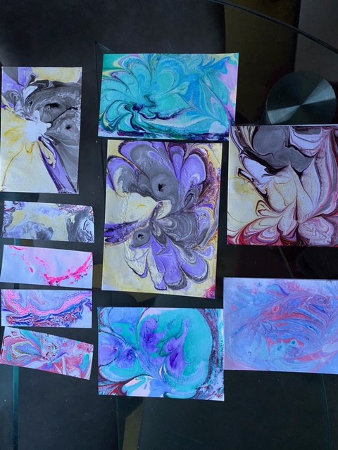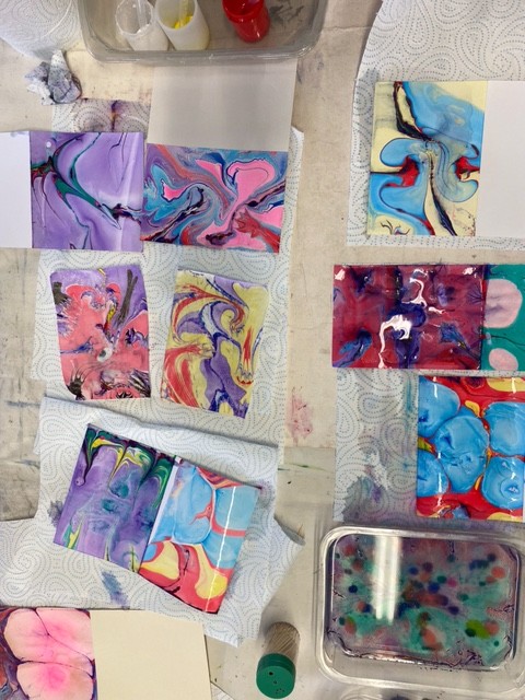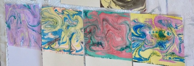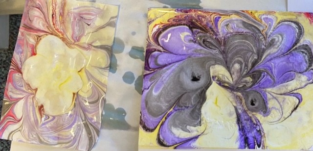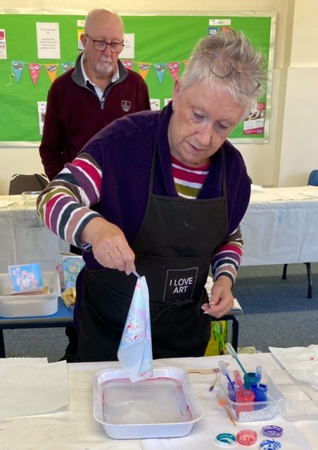 Lynda and Philip led a workshop on marbling on 4th November. All materials were provided, we just had to bring an apron.