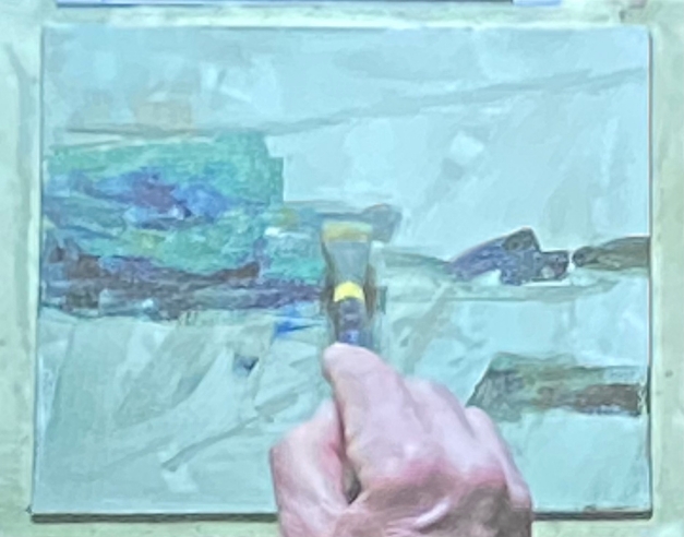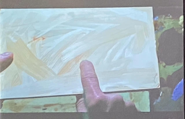 Paul created two different landscapes, one on canvas board and one on acrylic paper. It was interesting to learn about the differences in the techniques he applied to each painting, the affect of using matt medium with acrylic paint, working dark to light, using a test strip to match a colour before applying and much more.