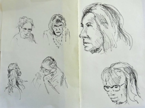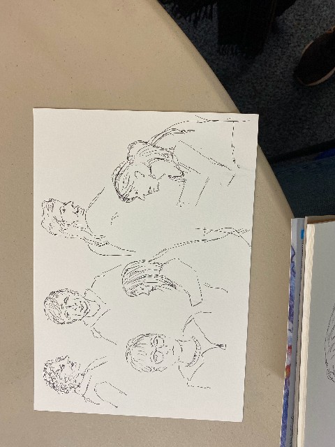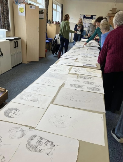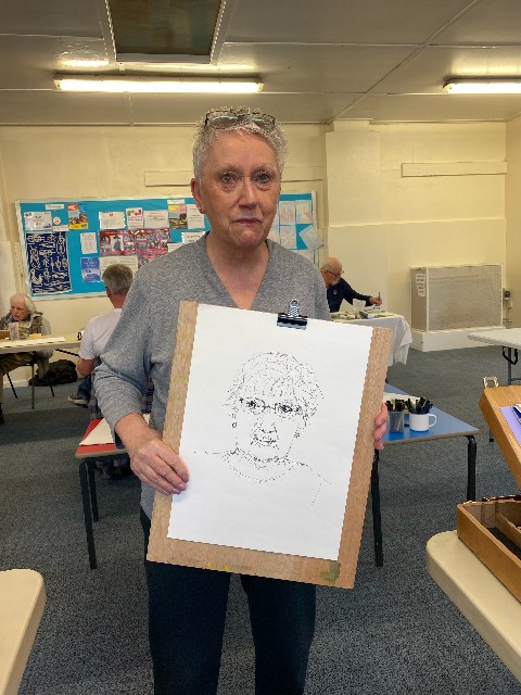 On 31st March, Lynda led a workshop on fast portaits. It involved sketching portraits of each other, using only fine-line pens, each one being done in less than 20 minutes. Pens and paper were provided. At the end of the morning a ‘Rogues Gallery’ was set up. This was a challenging but really fun day, with members producing some lovely work.