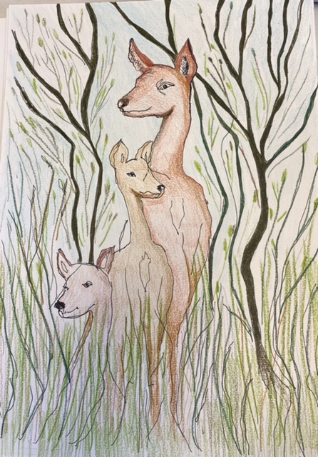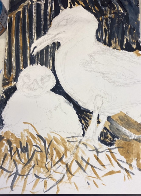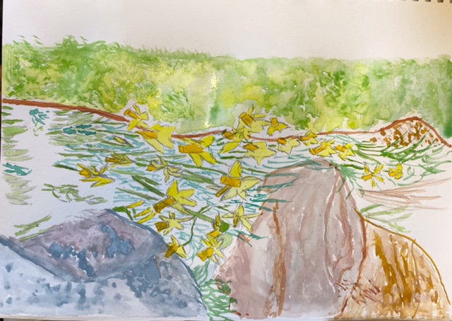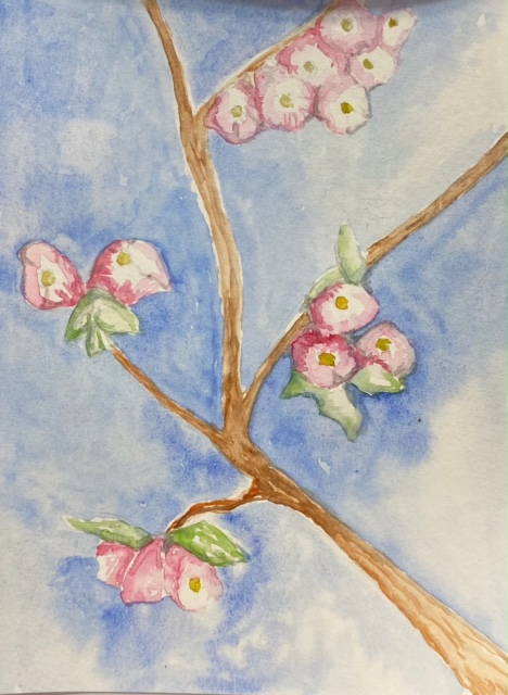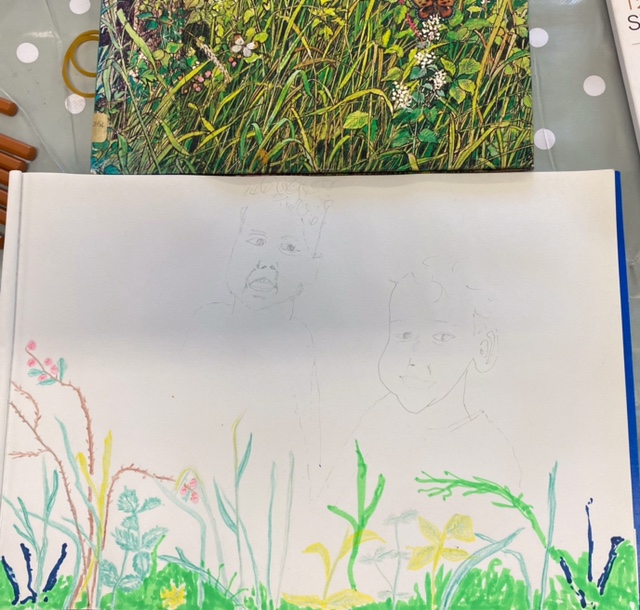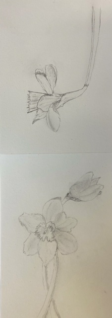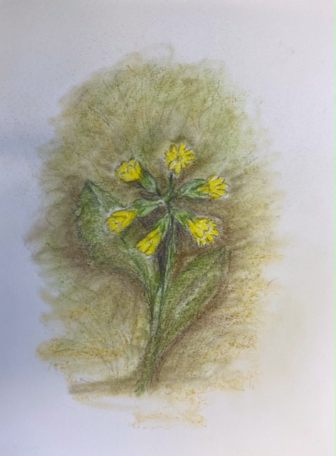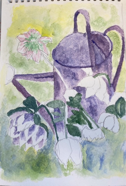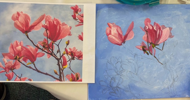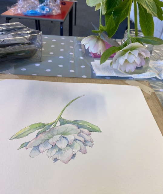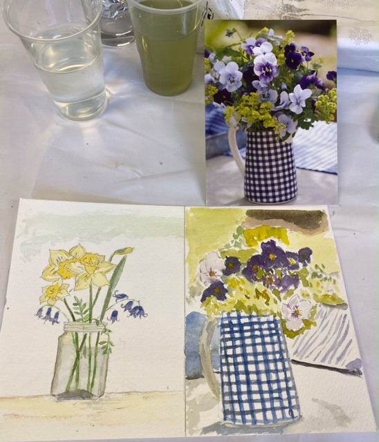 Carol led the workshop on 7th April, where members created artwork based on the theme of Spring. Carol brought in photographs, gardening books and some flowers picked from her own garden. Here are some pictures of work in progress.