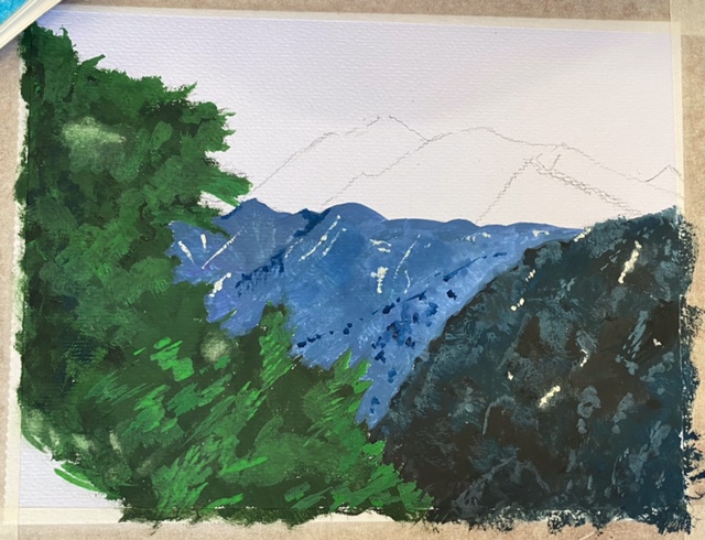 As a follow up to Bruce Mulcahy’s demonstration the previous week, we had a go at creating a landscape using gouache paint. Some members really enjoyed using the medium, although it wasn’t as easy as Bruce had made it look.