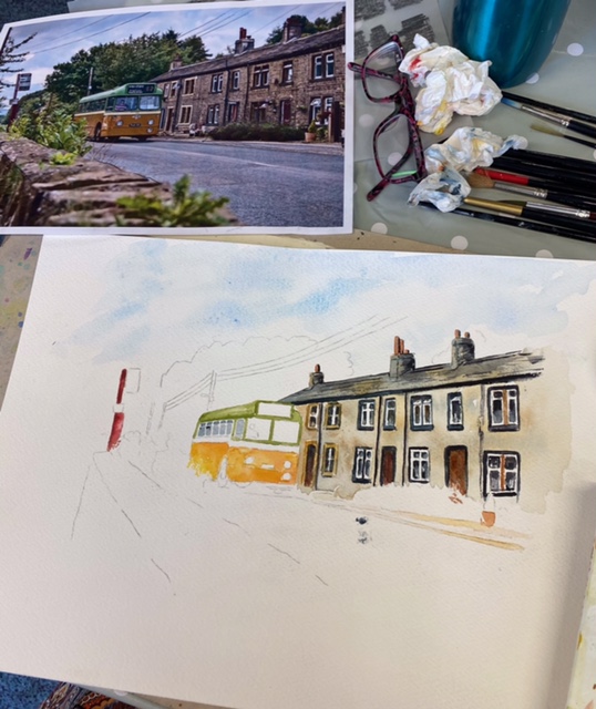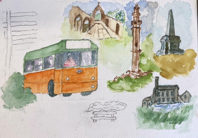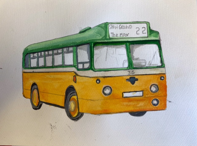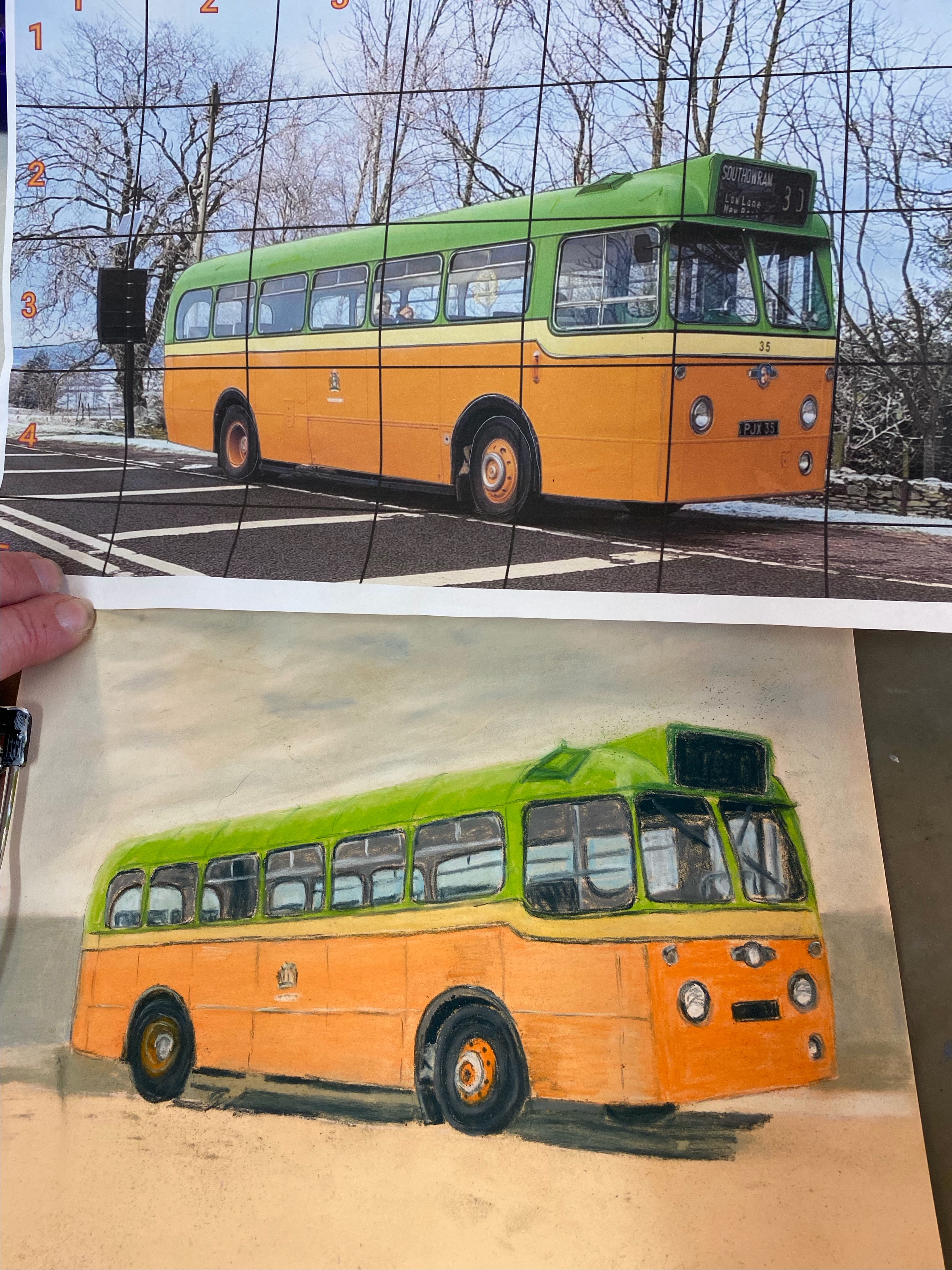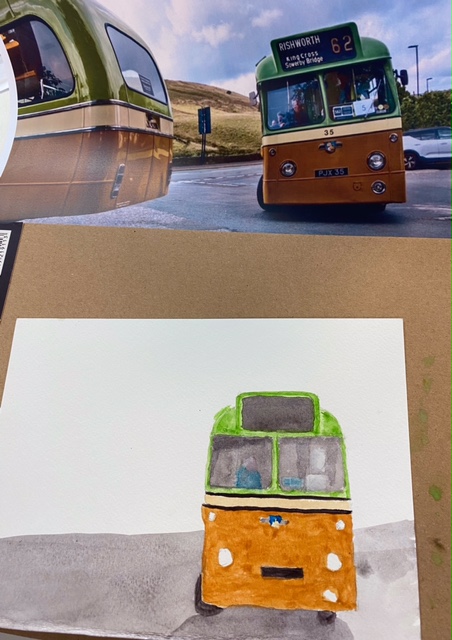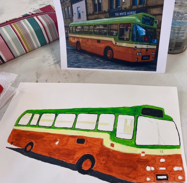 On 16th June, Lynda led our workshop and brought in many photos of heritage buses to inspire us to create artwork for the brochure. The Heritage Day event is on 9th September. The following pictures are mostly work in progress.