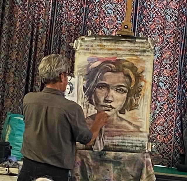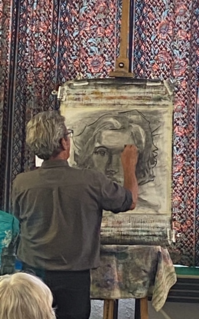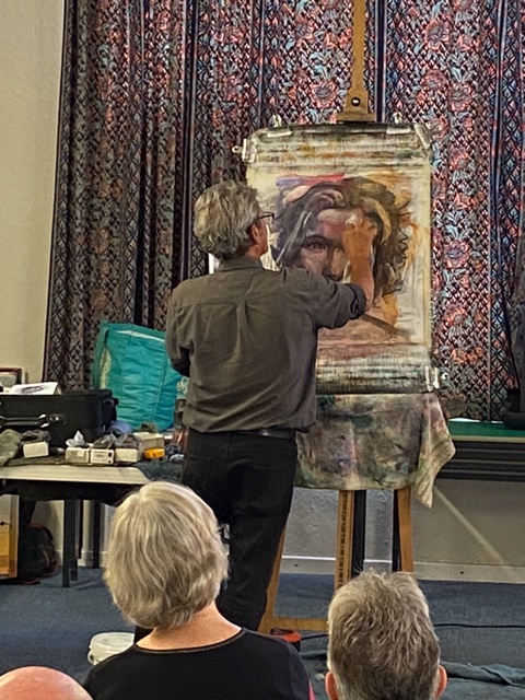 Anthony Barrow gave an excellent demonstration on the 30th June, which was informative, inspiring and entertaining. He showed us his very effective technique of using charcoal and acrylic glazes with an eraser/damp cloth to create his extraordinary artwork. He brought in lots of his completed works which were impressive. We will have go at trying out this technique next week.