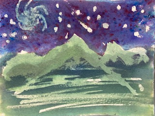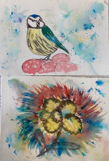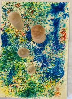 22nd September 2023 – The workshop was led by Lynda. Members were asked to bring watercolour paper, brushes and masking fluid. Brusho and other materials were provided on the day. Lynda explained what Brusho is and gave a demonstration on the different ways it can be used. For example you can sprinkle it on to wet paper, use a resist, paint on wood or shells. Members had a great time experimenting with this very colourful medium.
