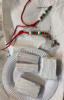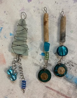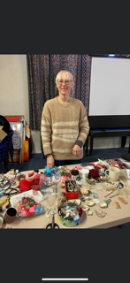 3rd November 2023 – Sue was invited to lead a workshop on making decorations for a Christmas Tree. The Art Society is participating in the Halifax Minster Christmas Tree Festival taking place 1st – 4th December. Sue brought in a variety of different materials and gave us lots of ideas and inspiration to make our own creations. Sue is a Mudlarker and uses many found objects in her artwork.