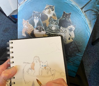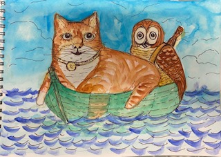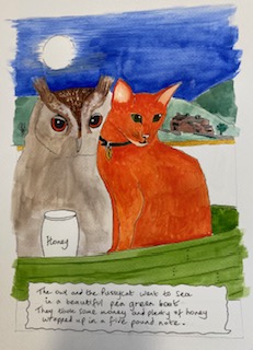 5th January 2024 – We had our first workshop of the new year led by Janet and Lynda. Members were asked to illustrate parts of the poem, The Owl and the Pussycat. Lynda gave very interesting information about Edward Lear’s life and Janet brought in lovely examples of work completed by other artists for inspiration.