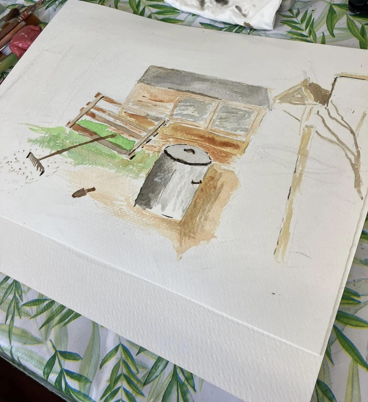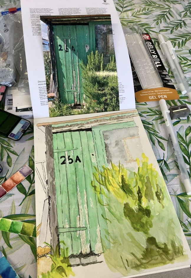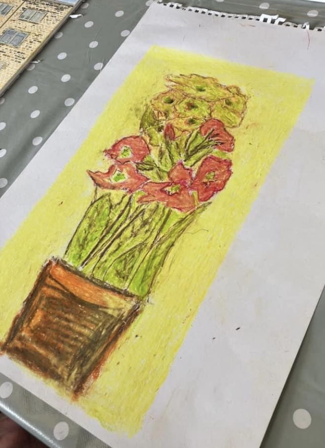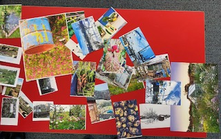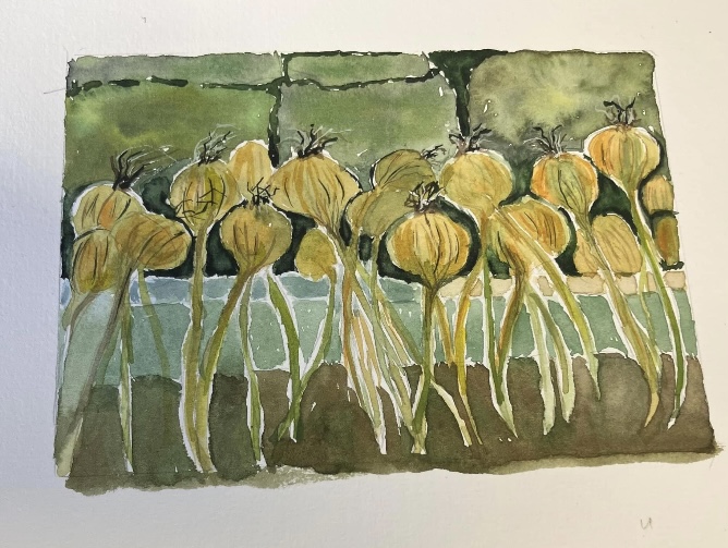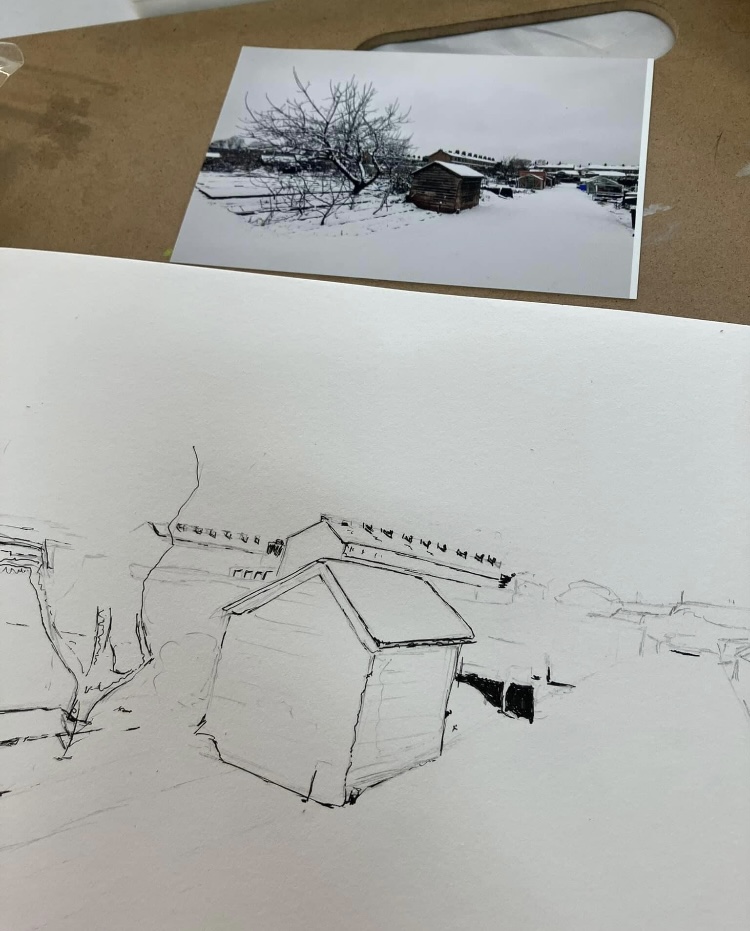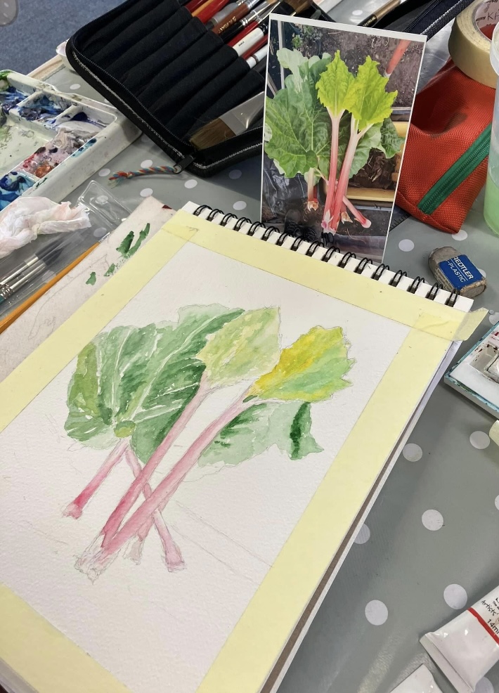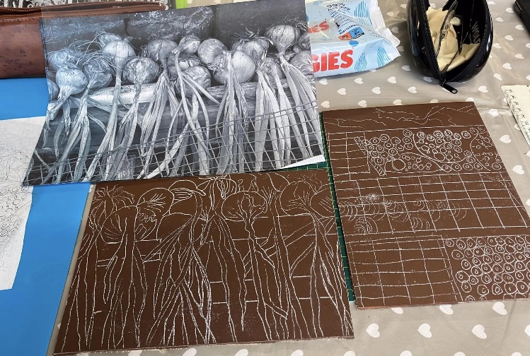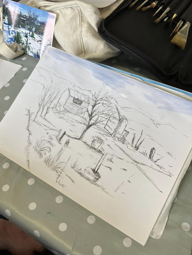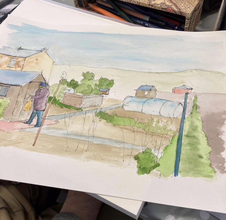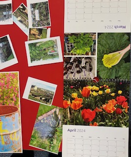 16th February 2024 – We have been asked to provide artwork for the Godfrey Road Allotments 2025 Calendar. Ilona brought in their current and previous calendars for reference and inspiration. Using sketches and many photographs from our visits members enjoyed the first of our allotment workshops.