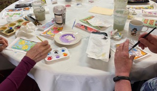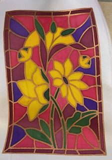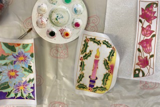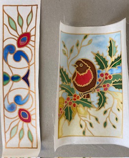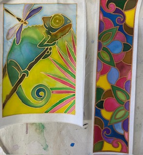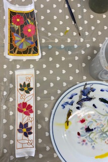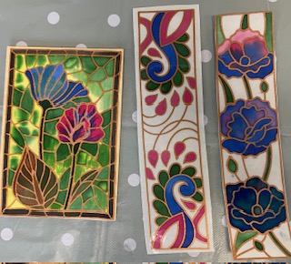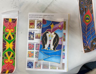 31st May 2024 – Lynda led this very enjoyable and relaxing workshop. Lynda provided silk paints, cards, images etc which inspired us to make a picture that could be made into a card or laminated as a bookmark.