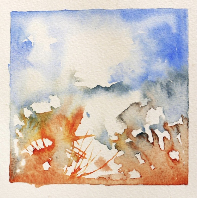 6th September 2024 – In this workshop, Annie gave a super talk about her ebb and flow project. Members had a go at creating their own little watercolour paintings.