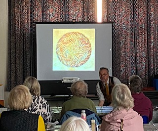 27th September 2024 – We had a welcome return from Winston Plowes who talked through some short films of him and others working outside creating land art. He also showed stills of other works. Due to its nature, this unique artwork only has a short life. Winston supplied a lot of materials and members also brought their own that helped everyone to have an enjoyable and creative morning.