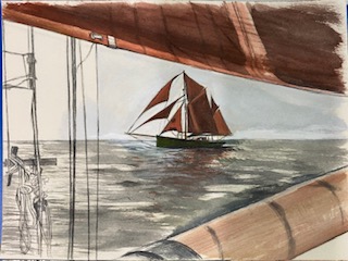 11th June 2025 – Simon made a welcome return. This time he gave an interesting talk about his commission to paint the Provident, the wonderful time he spent sailing around on the trawler, the complexities of painting accurate details of a boat that would stand up to the scrutiny of sailors and how the sketches he drew resulted in him doing 2 paintings. Members spent the rest of the morning sketching a boat themed artwork either using one of Simon’s sketches of the Provident or a picture they brought in.