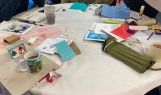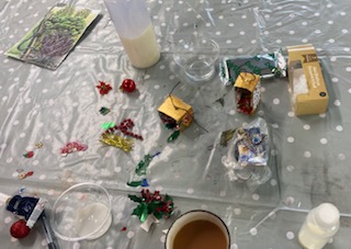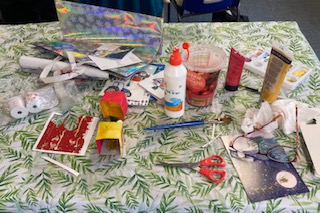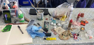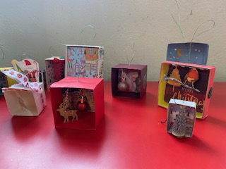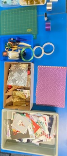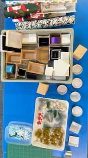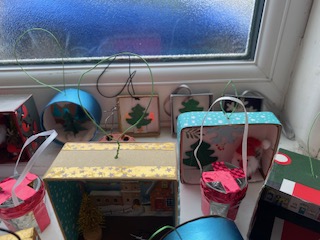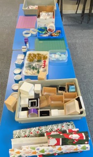 17th October 2025 – We will once again be taking part in the Halifax Minster Christmas Tree Festival. Lynda brought in lots of boxes and many different items for members to use, as well as using their own materials, creating a wonderful array of Christmas decorations.