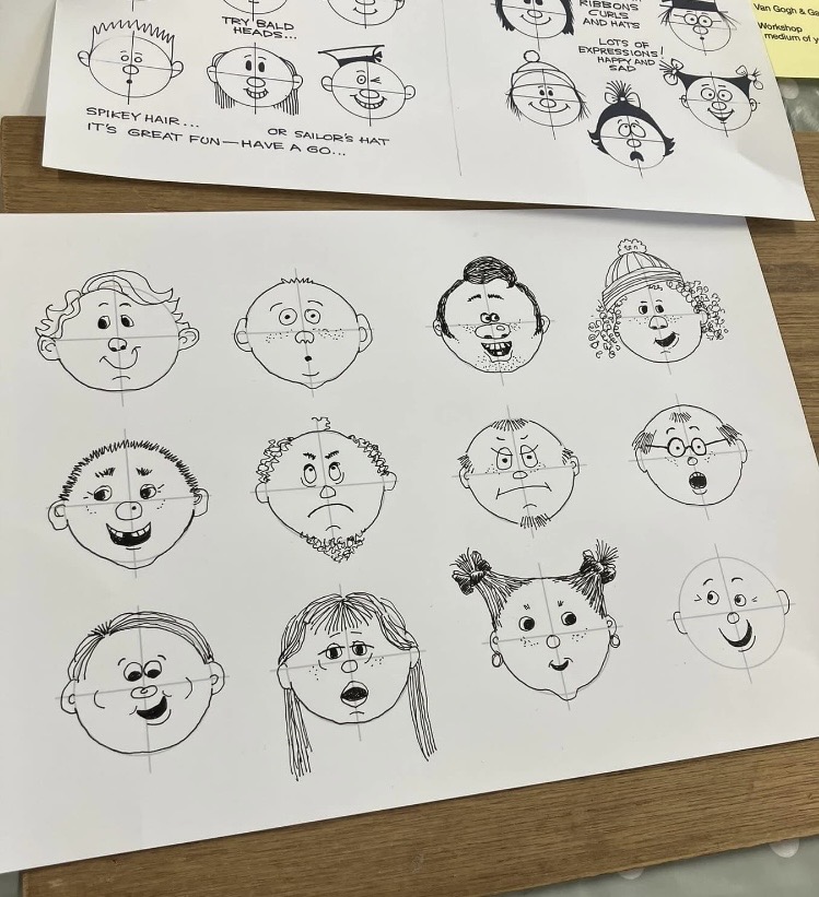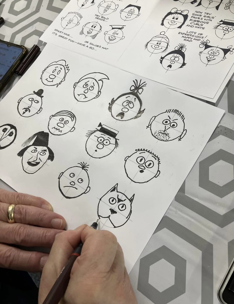 13th March 2026 – This workshop was led by Lynne Hickin. Everyone had fun learning all about cartoons – drawing funny faces and different expressions with just a few simple lines. There will be another Cartoon session with Lynne where we will develop a cartoon strip.