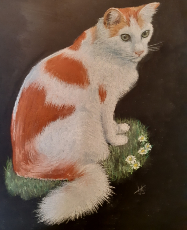 A local newspaper journalist in the North East, Derbyshire and Huddersfield for 40 years, I always had a keen interest in art, but little time to pursue it. Since retiring, however, I’ve explored both painting and drawing, attending courses at The Artworks. Unexpectedly, during Lockdown I found myself commissioned to produce a number of pet portraits. As an animal lover (married to a vet) I greatly enjoyed the challenge.