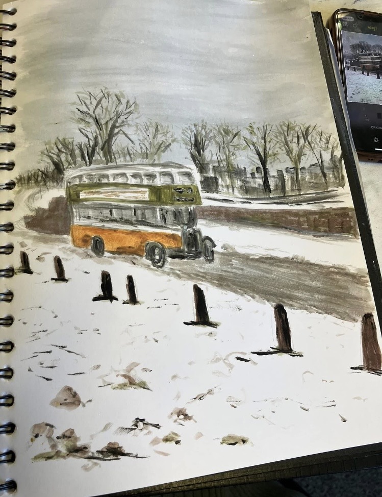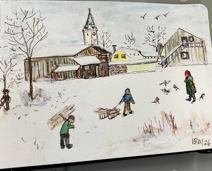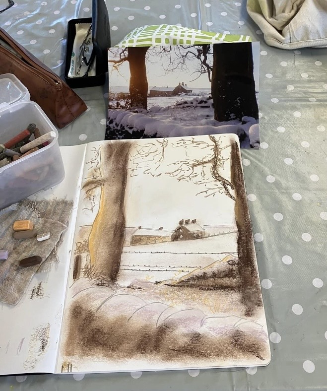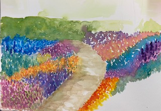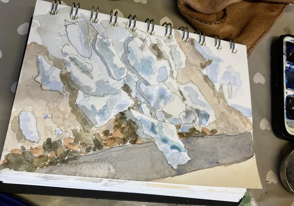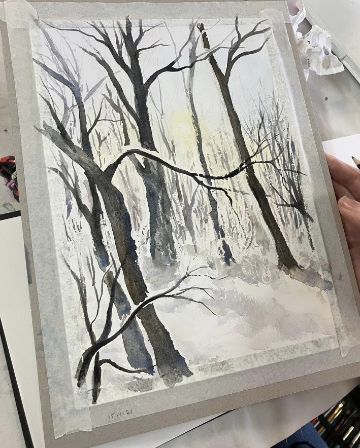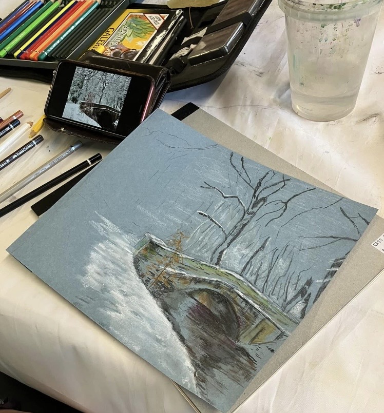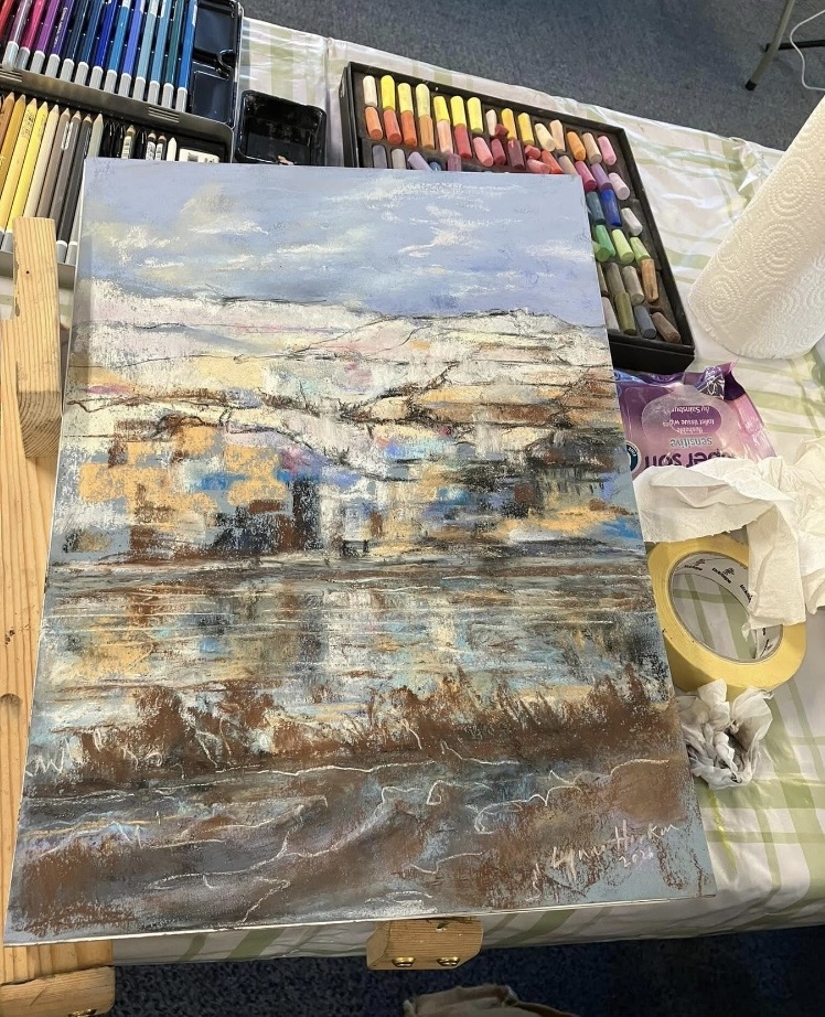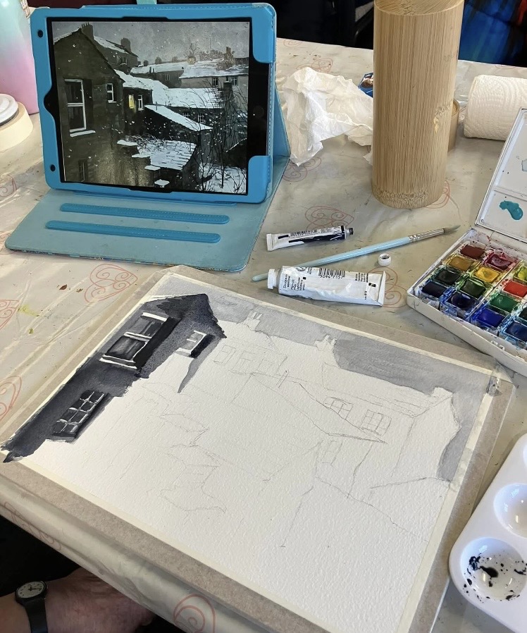 30th January 2026 – We welcomed back Jane who demonstrated painting a water feature from a photograph in watercolour. Jane explained how she outlines the picture first, applies masking fluid to areas she wants to keep white, prepares a page of the colours and colour mixing she will use. She also gave members lots of ideas, tips and techniques to create different effects, especially when painting water.