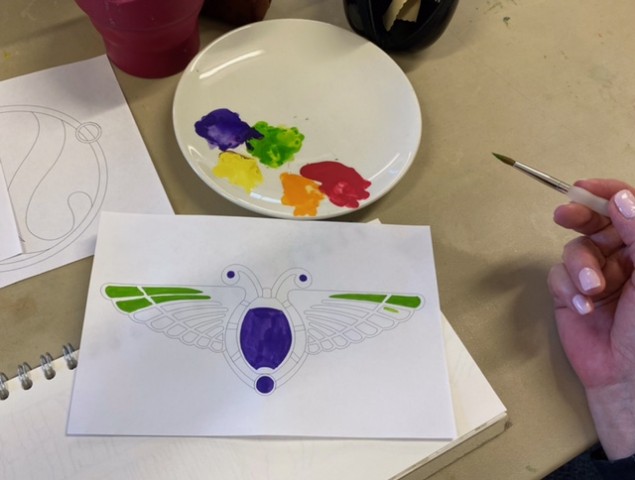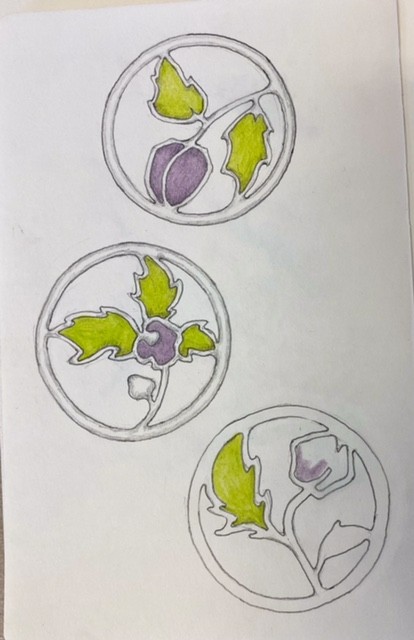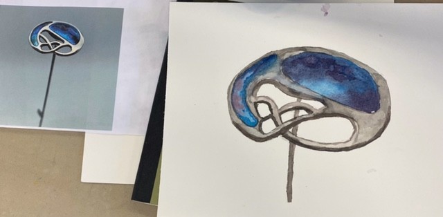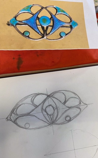 The next week, following on from Lynne and Philip’s inspiring talk on Charles Horner, they brought in some templates and photos we could use to help create our own jewellery designs. It certainly wasn’t as easy as it first appeared!