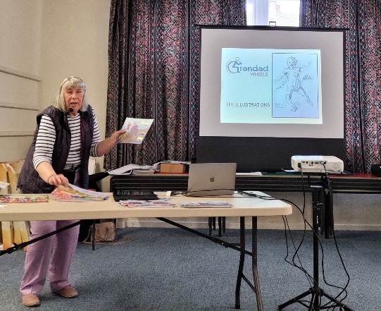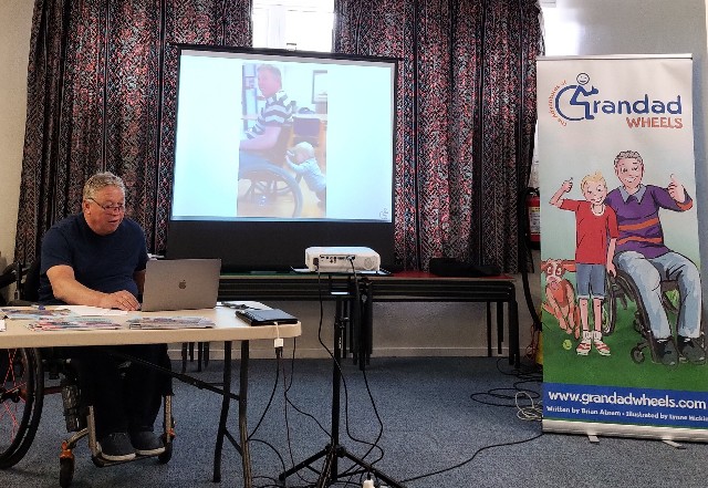 Last Friday a lot of members came to listen to our guest speaker Brian Abram. He gave a very interesting and moving illustrated talk on how he came to write 6 books in the series ‘Grandad Wheels’. Brian goes to many primary schools reading out of his books and talking to the children, thus breaking down prejudices about people in wheelchairs.