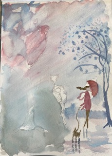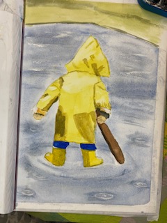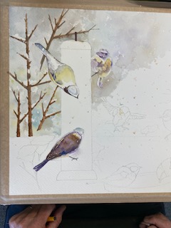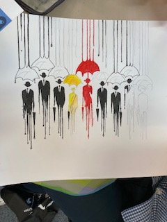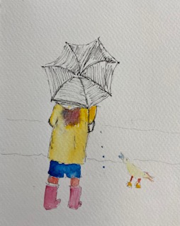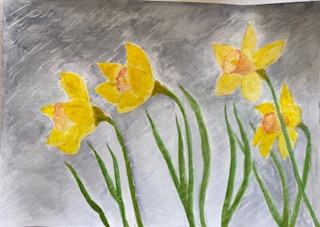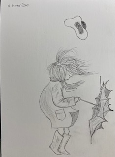 4th April 2025 – To start the new month off we spent the morning creating rainy day pictures with ‘April Showers’ as the theme. Janet brought in a few pictures/photos as helpful ideas to inspire us.