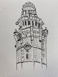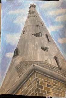 4th July 2025 – Today we celebrated Wainhouse Tower being 150 years old. Lynda brought in photos, pictures and a lino cutting to help inspire members to create their own artwork of the wonderful structure.