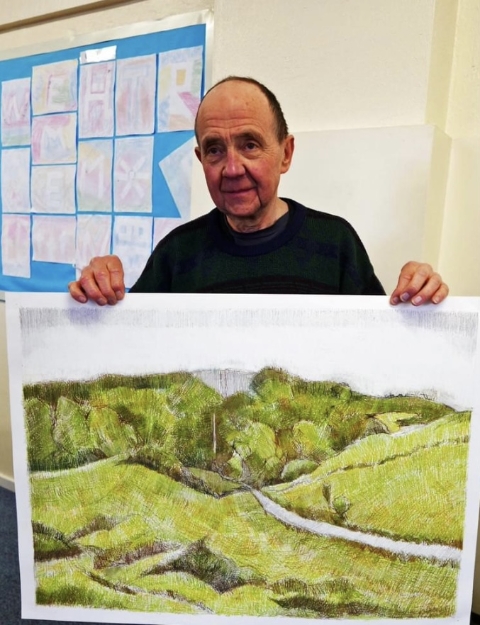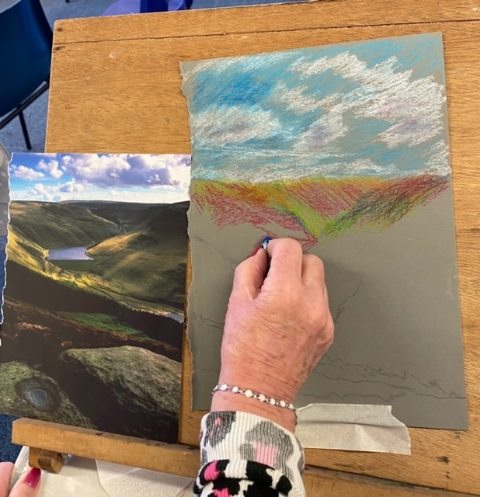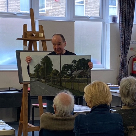 Jake Attree brought in some impressive examples of pictures he has done using oil pastels – some taking several months, even years! He gave a short demonstration of the techniques he uses to create his pictures.