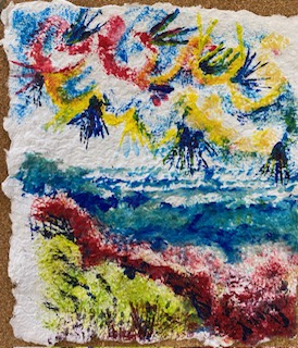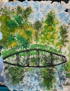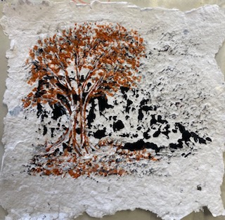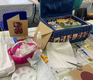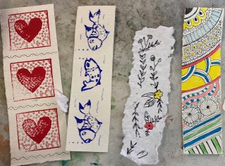 10th October 2025 – Following on from last weeks hand made paper demonstration, Jenny left a lot of paper for members to practice on this week. Lynda and Lynne provided a variety of stamps, there were also gel pens, acrylic, coloured pens etc for members to be creative with.