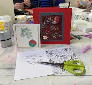 7th November 2025 – This workshop was led by Kate who brought in a lot of materials/old Christmas cards/stickers etc for members to use to create new Christmas cards. Kate also demonstrated different ways of creating a card. It was a very enjoyable and productive morning.