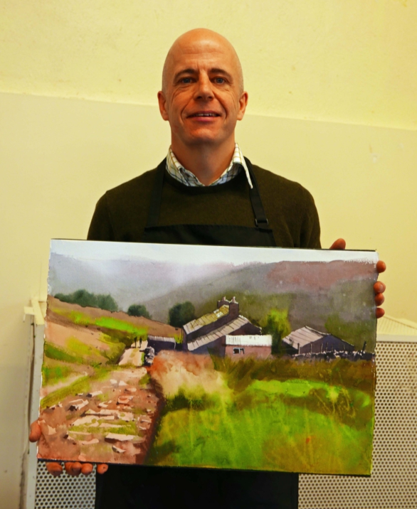 Paul created two different landscapes, one on canvas board and one on acrylic paper. It was interesting to learn about the differences in the techniques he applied to each painting, the affect of using matt medium with acrylic paint, working dark to light, using a test strip to match a colour before applying and much more.