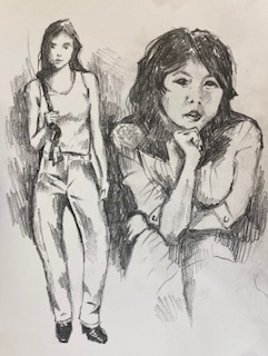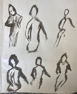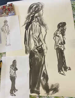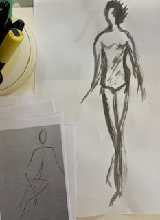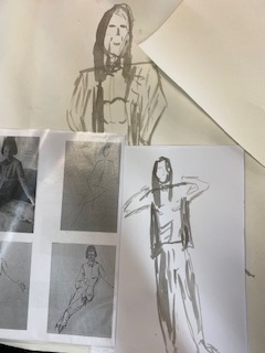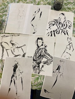 31st January 2025 – Nicola is a fashion illustrator and brought in her stunning artwork, Chanel books she illustrated, fashion magazines, photos and lots of tools for members to use as part of her workshop. We started by practising drawing the human frame and encouraged to use a loose painting style. We then did quick 5 minute sketches of Nicola in different poses followed by creating our own artwork using an image from one of the magazines/photos. It was a challenging and thoroughly enjoyable morning.