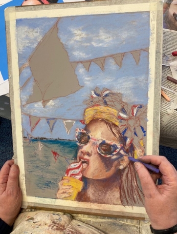 On the 21st October, a soft pastel workshop was led by Carol Pope and the subject matter was a portrait of a person or animal. Carol talked through how she created the many wonderful portraits using different techniques.
